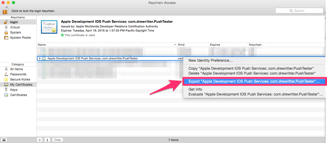Export your Apple Push certificate from Keychain Access