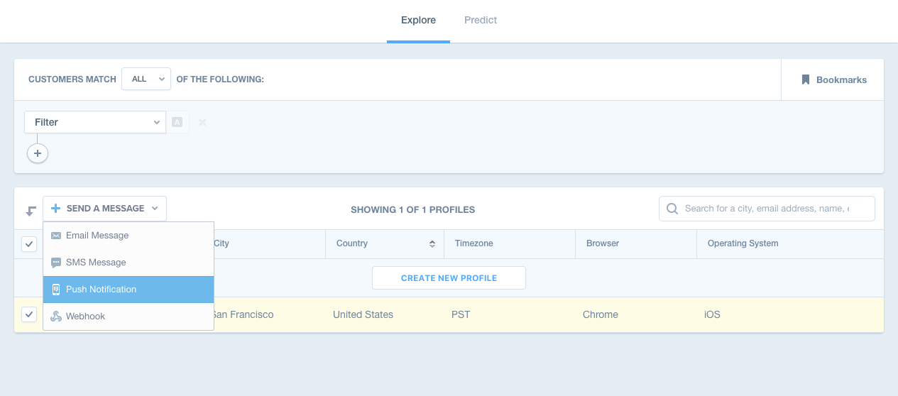 You can only send push notifications to users whose profiles have