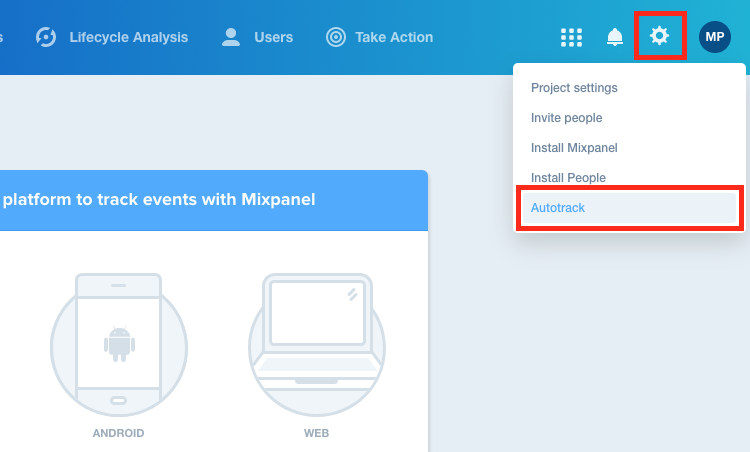 Navigate to our editor by clicking your name in the upper righthand corner of your robotmia project and selecting Set up tracking from the dropdown.![]()